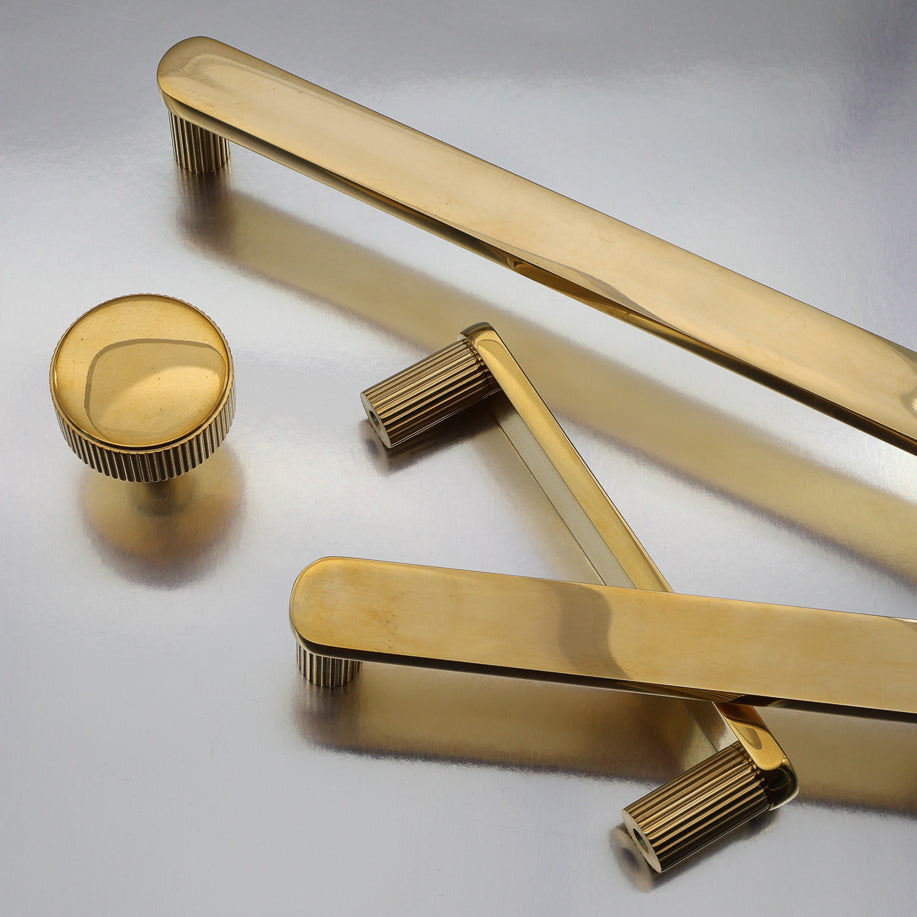 Smooth cylindrical forms meet crisp diamond knurling. Six finishes. Multiple sizes.
